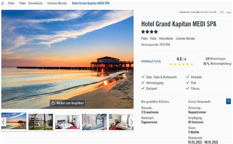 Entfliehen Sie dem Alltag und erleben Sie unvergessliche Tage im malerischen Küstenort Ustronie Morskie. Das Grand Kapitan Medi-SPA verwöhnt Sie mit erstklassigem Komfort und luxuriösen Annehmlichkeiten. Die idyllische Lage an der polnischen Ostsee bietet endlose Strände, charmante Promenaden und zahlreiche Freizeitmöglichkeiten wie Radfahren, Wandern und Wassersport.