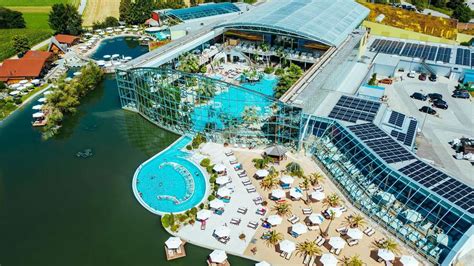 Im Thermalbad lässt du dich von sanften Nackenduschen verwöhnen, stattest den Wasserfällen einen Besuch ab, steigst in den Whirlpool, nimmst Platz auf den Sprudelliegen, genießt die Massage der Wasserdüsen oder gibst dich dem Gefühl der Schwerelosigkeit im Strömungskanal hin.