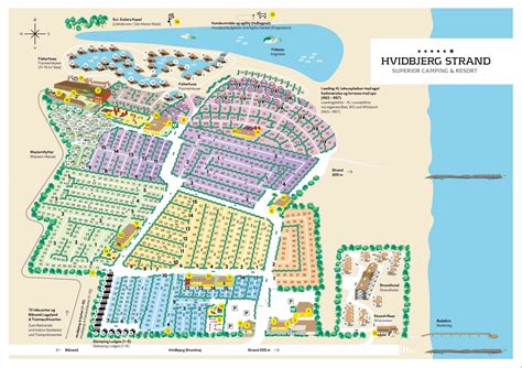 Der Hvidbjerg Strand Feriepark liegt nur 200 m vom Strand entfernt. Das Areal ist durch unterschiedlich hohe, verschiedenartige Hecken und Baumreihen gegliedert. Die Standplätze sind mit einem Stromanschluss und einem Antennenanschluss für Fernsehgeräte ausgestattet. Campinggäste können zwischen verschiedenen Standplätzen wählen, vom Standardplatz bis zum XL-Luxusplatz mit eigenem Bad und Außenspa.
